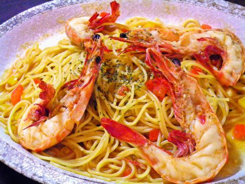 海老を2尾使用したパスタ。海老の旨味がきいた和風しょう油味のパスタは一見の価値あり。明るく清潔な店内。女性一人でも気軽に立ち寄れる、アットホームな雰囲気のお店。
