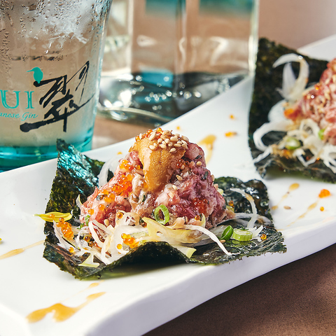 にいがた和牛はとろけるような食感と上質な脂の甘味が特徴。A4等級にいがた和牛を贅沢に使った肉寿司はぜひ食べて頂きたい逸品です!他にもたくさんの創作和牛料理をご用意しております!