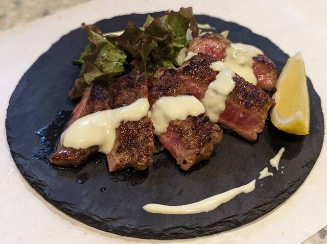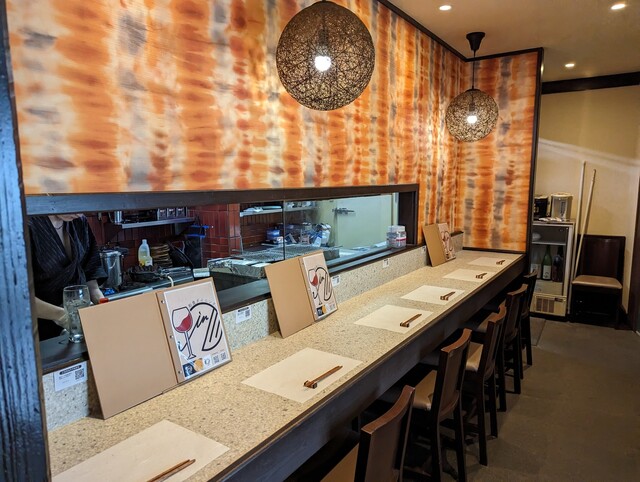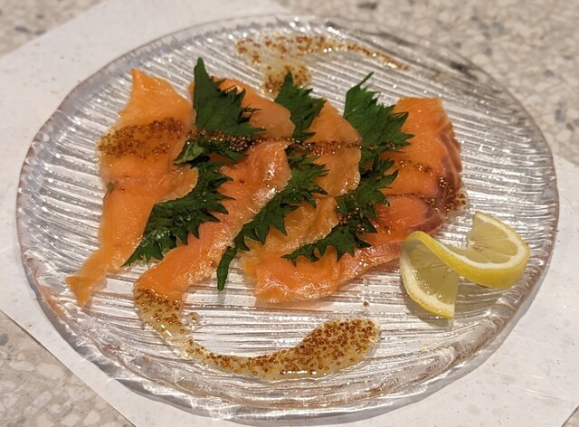 和やかな雰囲気で、素材にこだわった和食とナチュールワインのペアリングを楽しめる。定番のスモークサーモン紫蘇パッチョやわさびソースのサーロインステーキは必食。