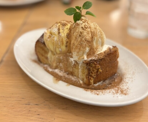 開放的な空間で陽光が溢れる中、手作りデザートや焼きたてパンも楽しめる。ランチからディナーまで多彩なメニューがあります。