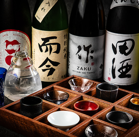 日本酒は、有名な「田酒」「而今」から季節ごとの銘柄まで、魚料理に合うものを常時20種類ご用意!その内15種類が季節によって入れ替わるため、訪れるたび新たな一杯に出会うことができます!
