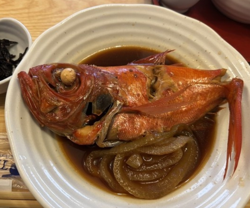 獲れたての金目鯛を豪快に使った煮付けをはじめ、刺身御膳や天ぷら御膳、丼ものなどメニューが豊富。金目鯛は切り身でも大ぶりで食べ応えがあり、味がしっかり染みて絶品です。味噌汁やひじきなど、どこか懐かしさを感じる定食構成も魅力で、観光客にも団体客にもおすすめなお店です。