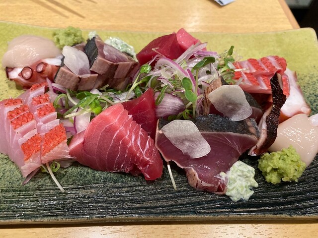 定期的にオーナーが直接豊洲市場から仕入れている新鮮食材を使用したお造り盛り合わせが当店のオススメの一品となっております。マグロのなどの定番品から、旬の食材を使った珍しい逸品まで、様々な味をお楽しみ頂けます!