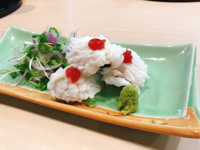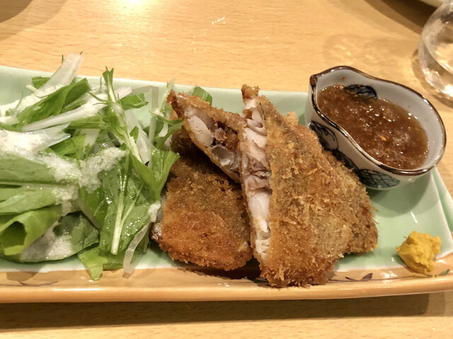 他店ではなかなか味わえないのが、こちらのとらふぐ正油焼きとなります。天然のとらふぐを使用しており、カオ、中落ち、カエル、ウグイス、クチバシなどの様々な部位からその時の仕入れ状況により、ランダムで3種類ほどをお出ししております!