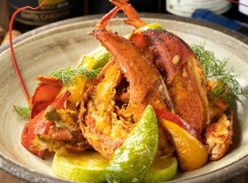豪華にロブスター丸ごと一匹、自家製スパイスで焼いた『活ロブスターのスパイス焼き』