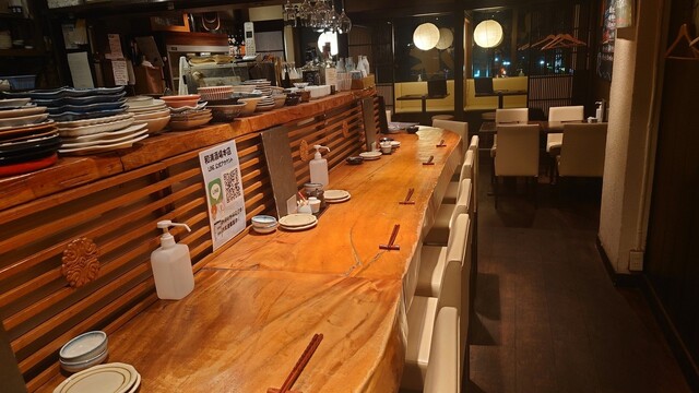 落ち着いた色味で和モダンな空間の店内。気軽に利用できるカウンター席と、グループの方に最適なテーブル席をご用意しております。スタッフとお客様との距離が近く、要望に合わせて柔軟に対応が可能!