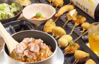 1. お出汁で食べる串かつと釜めしの専門店 ぎん庵 難波