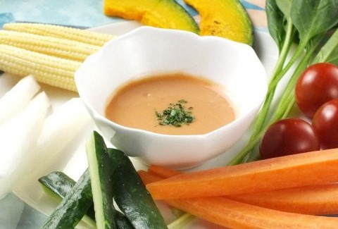 色とりどりの季節の野菜をつかったディップサラダです。ヘルシーで新鮮な野菜を存分に味わっていただけます。たっぷりディップしても、もちろんそのままでもOK☆