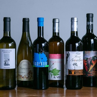 こだわりの料理にはソムリエ岡本の選ぶヴァンナチュールワインを。ワインはすべてナチュラルワイン。極力人の手を加えすぎず、ブドウ本来の味わいと、その土地のテロワールを最大限表現したワインを取り揃えております。