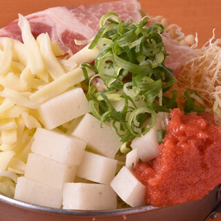 当店人気No.1の「やいてこもんじゃ」は、明太子・もち・チーズの王道の組み合わせ◎名古屋ではまだ数少ない客席に鉄板があるスタイルで、目の前でスタッフが焼き上げるため、初めての方も安心して楽しめます!その他、鉄板料理や串焼き、おつまみも豊富にご用意。お好み焼きや九条ねぎ焼きなど定番の粉ものは、大阪から粉やソースを取り寄せており、外はカリッ、中はふんわりとした食感を追求したこだわりの逸品です。