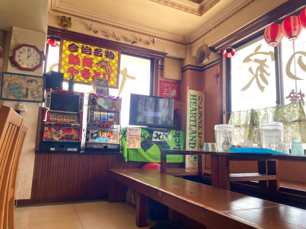 店内は2階にあり、少しディープな雰囲気が漂いますが、アットホームで温かい接客。男らしいパンチの効いた味付けの焼き飯やガーリック焼き飯が堪能でき、スポーツ観戦にもぴったりな居酒屋気分も味わえます。