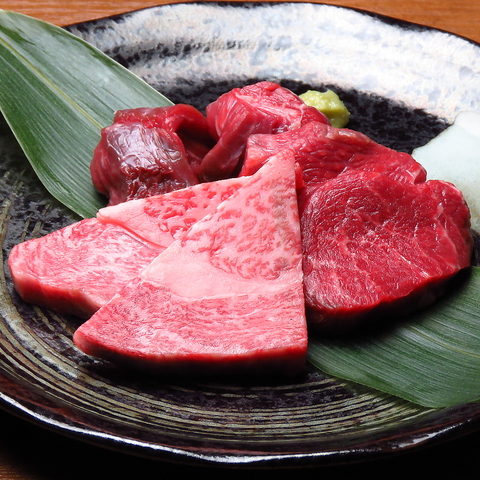 肉を知り尽くした職人が厳選する上質なお肉は、赤身と脂肪のバランスが取れ、しつこさのない軽やかな脂が舌の上でとろけます。切り置きしないことで極限まで酸化を防ぎ、一枚一枚丁寧にカットした当店自慢のお肉だちを是非盛り合わせにて。