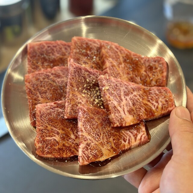 当店は、七輪で焼き上げる炭火焼肉のお店♪あえてブランド牛にこだわらず、その時々でA4ランク以上の上質な黒毛和牛雌牛を仕入れており、柔らかな食感と程よい脂の甘み、濃厚な肉の旨味がご堪能いただけます◎またご注文をいただいてから手切りする“オーダーカット”でご提供するため、旨味を逃しません!まずはタンからお楽しみ下さい♪