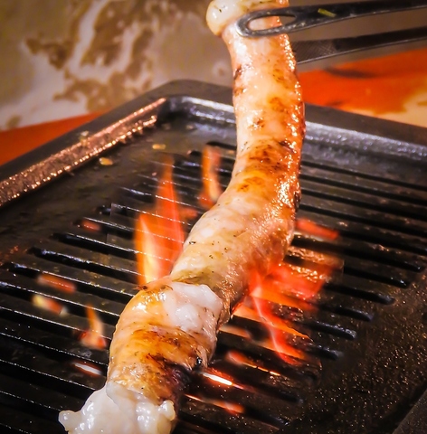 丸ごと一本を豪快に焼いて下さい。火が上がる様は、思わず動画を撮ってしまいたくなるほど。小倉では、うっしっしにしかないメニューなので丸腸ファンの方は是非♪そのほか壺漬け50cmホルモンも!うっしっしのエンターテイメント焼肉をお楽しみください。