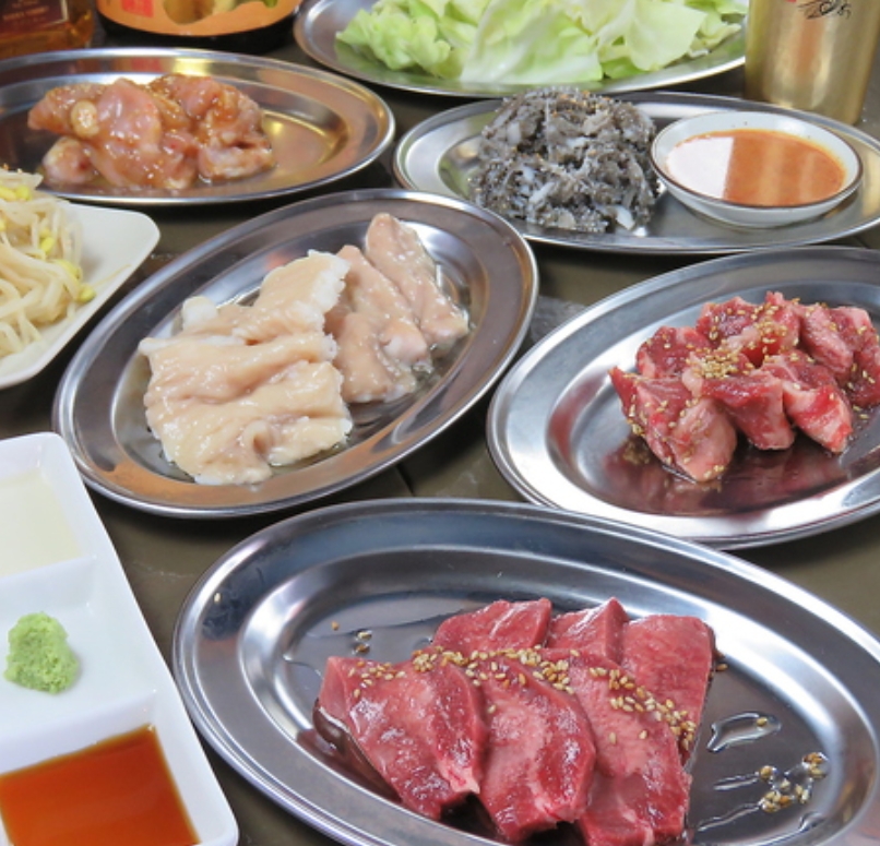 たくさん食べたい方向けのコースご用意しております♪やみつきキャベツ、もやしナムル、センマイ刺し、牛タン、ホルモン盛合せ(シマチョウ、小腸)、中落ちカルビ、鶏せせり、〆の一品と全8品からなる贅沢メニューです!当店自慢の新鮮なお肉をご堪能下さい♪