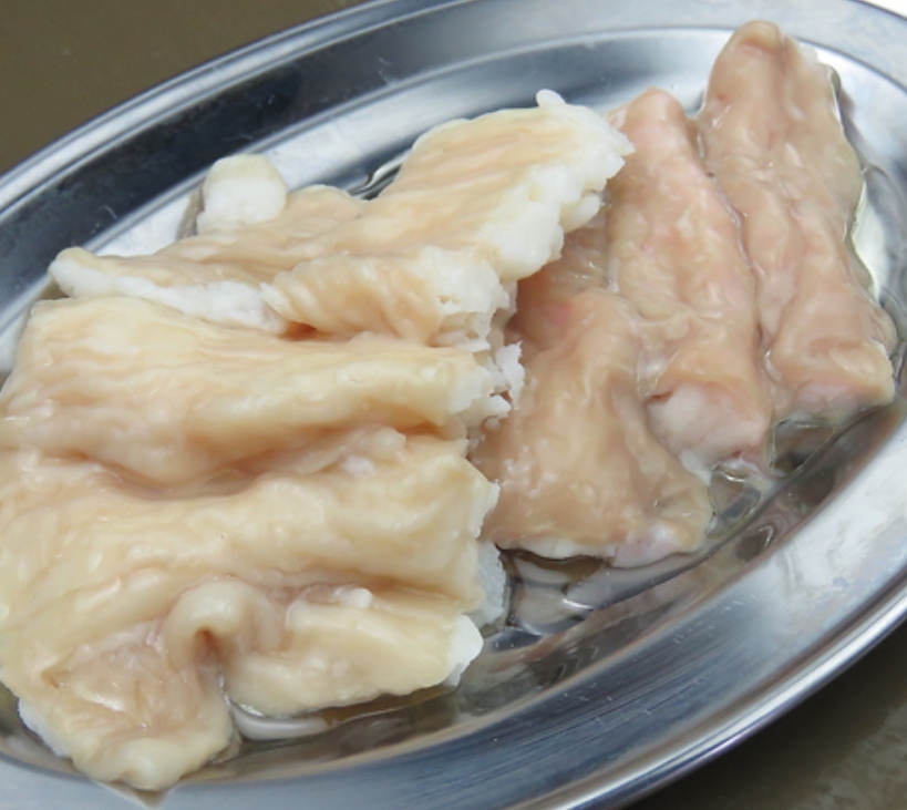 ホルモンの定番!しま腸、小腸の2品の盛合せ!あぶらが美味しくわさびでさっぱり食べられる逸品です♪肉厚な食感とぷりぷりとした食感をぜひお楽しみください!お酒がすすむ味付けとなっておりますので、お酒のお供にお楽しみください♪