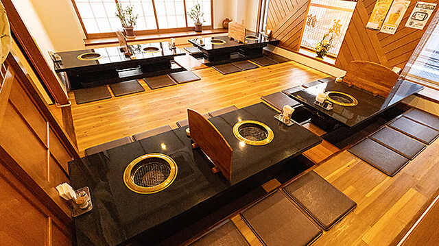 駅近でアクセス良好、全68席の広々とした店内はテーブル席や掘りごたつ席が揃い、半個室利用も可能。最大25名までの貸切にも対応し、家族利用から宴会まで幅広く活躍。居心地の良さが魅力の使い勝手抜群の焼肉店です。