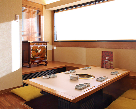 各テーブルともボックスタイプの席になっておりますのでソファに腰掛けてゆったりとお食事をお楽しみいただけます。ご家族連れ、ご友人、仕事帰りの宴会などにも♪ 喫煙ルームを完備しておりますので、ご家族連れも安心してご利用いただけます。