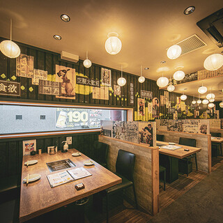丸い提灯風の照明や新聞のようなデザインの壁紙など、インテリアに遊び心が詰まった店内☆お席は、テーブル席・ソファー席・掘りごたつ席の3タイプを設けております。ワイワイと楽しめる明るい雰囲気は、お仕事帰りのサク飲みから女子会、各種ご宴会、二次会利用まで幅広いシーンで使い勝手抜群◎リーズナブルな価格設定にもこだわっておりますので、普段使いに最適です♪