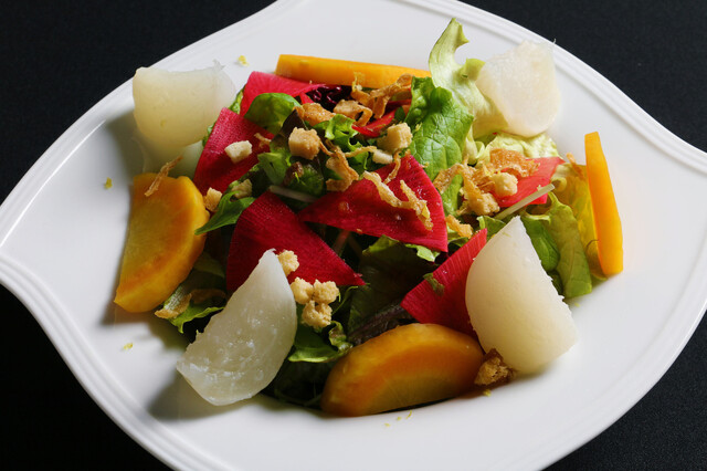 人気メニューの「ミルフィーユロース」は、当店こだわりの名物料理。三層に重なるサーロインロースとつけだれが絶妙に絡み合い、口の中でとろける一品です。アラカルトだけでなく、贅沢な食材をふんだんに盛り込んだコースも多数ございます。ミルフィーユロースが堪能できるコースもランチ・ディナー共にご用意しておりますので、シーンに合わせてご利用ください。