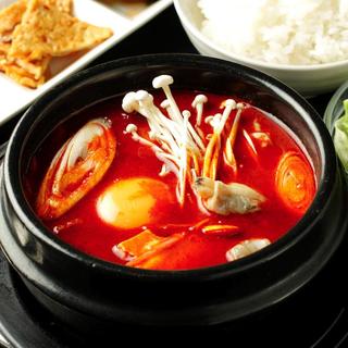 焼肉だけではなく、種類豊富な韓国料理もご用意しております!一押しは「スンドゥブ」。牛骨を下茹から2〜3日手間暇をかけて仕込んだスープは、牛の旨味がつまった逸品!そのほか、「チヂミ」や和牛の切れ端を使用した「牛すじ煮込み」はランチでも非常に人気です!