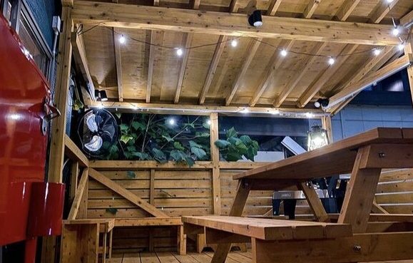 喫煙店内禁煙、店舗前に灰皿が設置されています。