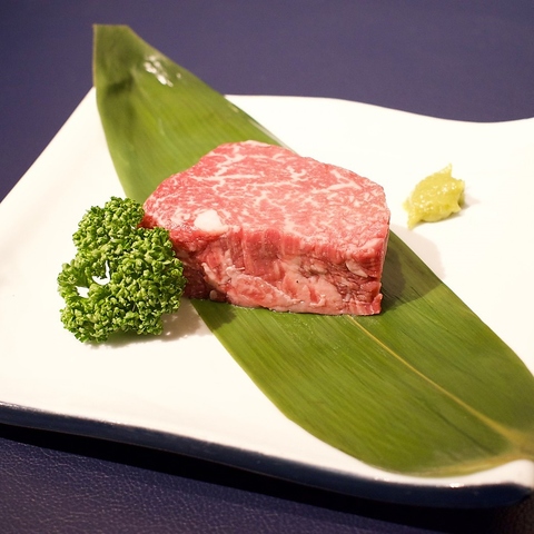 ヒレステーキは柔らかくジューシーな和牛を贅沢に堪能できる逸品です!口に入れた瞬間に広がる上質なお肉の旨味と、わさび醤油の爽やかな辛味が絶妙にマッチします。大切な方の記念日などにもどうぞ!