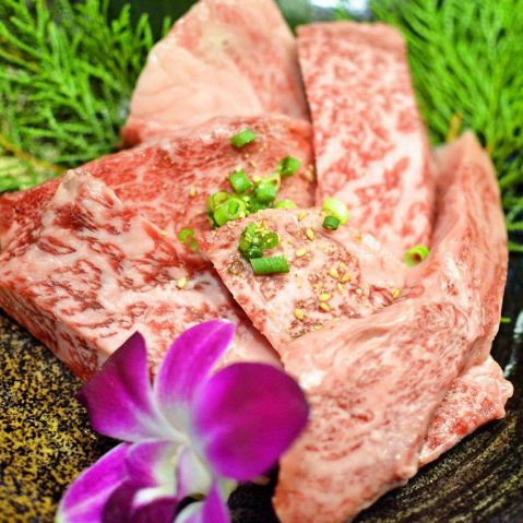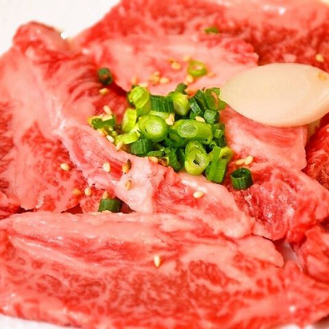 上質な牛タンの分厚い皮を丁寧に削いだ後、柔らかいタン元部分を分厚くスライスし、一枚一枚丁寧に味付けをしています。ネギムンチと一緒に是非どうぞ!常連のお客様は必ずご注文いただく一品です。数ある肉の中で迷ったらまず上タン塩からどうぞ!