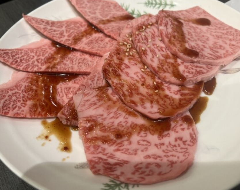 厚切りサガリは脂控えめながら柔らかく、赤身のコクをしっかり味わえる一皿。霜降りロースのとろける食感やカルビのジューシーさなど、部位ごとの違いを楽しめるのも魅力です。