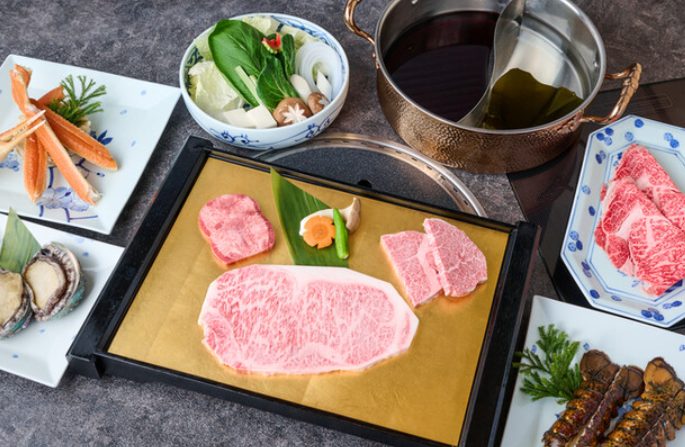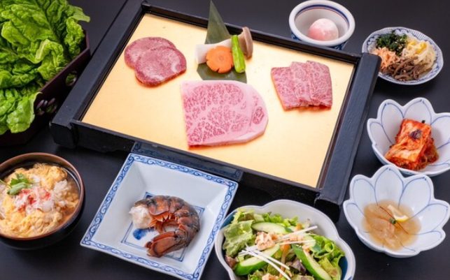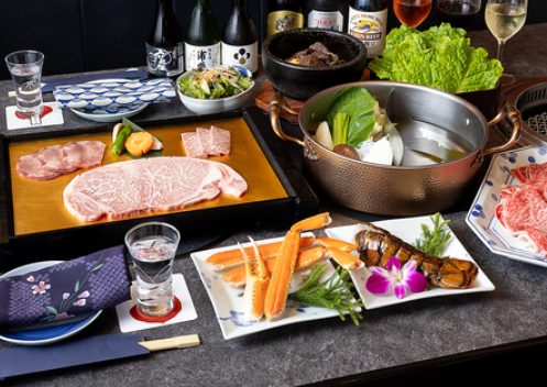 当店では松阪牛や国産和牛を使用し、厚さ8mmにこだわったカットで肉本来の旨味と柔らかさを最大限に引き出しています。焼肉、しゃぶしゃぶ、すき鍋の中から2種類を選べる贅沢コースで、至福の味わいを心ゆくまでお楽しみください。