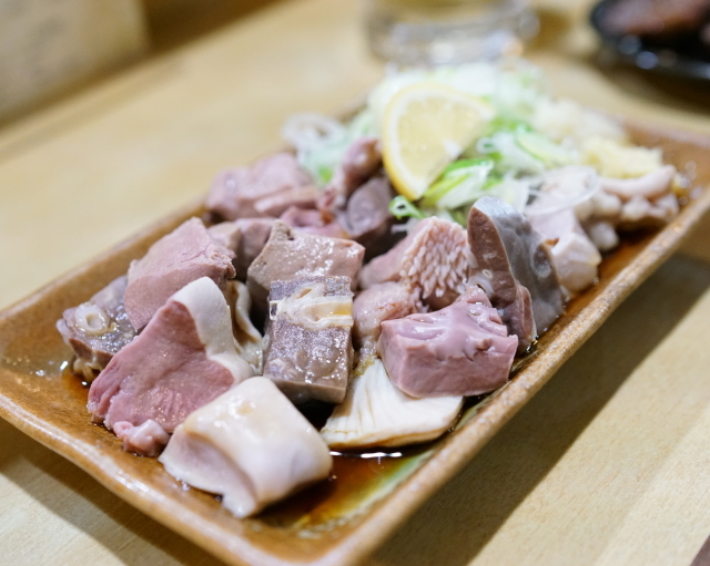 ガツ刺しやセンマイ刺しもあって、やきとんオンリーじゃないのもまた魅力!名物やきとんはどれも一本90〜110円と安く、どれも最高においしい!