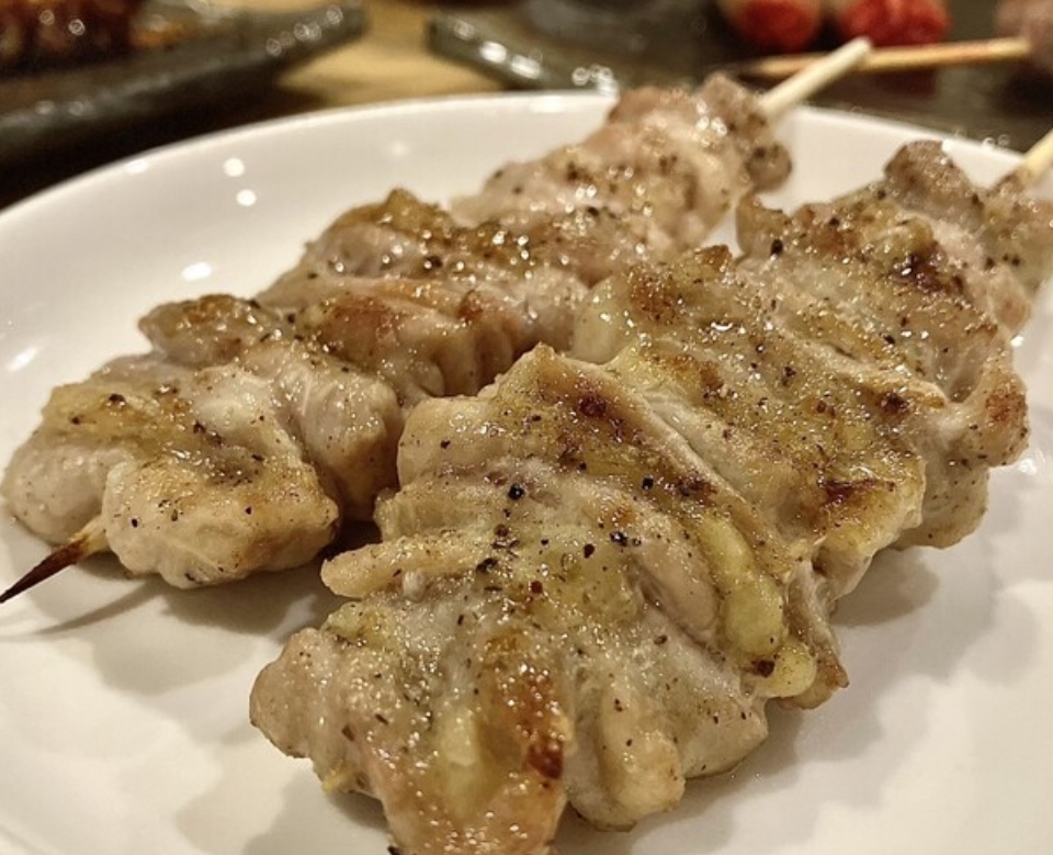 せせりに味噌たれを付けて焼き上げます。麹味噌に調味料を混ぜ、一味唐辛子も入れております。食材と調味料の甘みに程よいピリ辛が食欲を増進させます。また、親鶏とひな鶏の胸肉ともも肉に野菜を混ぜ合わせたピーマンの肉詰め、数量限定のはつもと、筋を丁寧に取り除いたささみ等お好みに合わせてお召し上がり下さい。