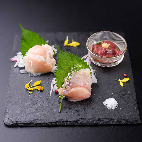厳選した赤鶏は特別な低温調理をすることで、限りになく刺身に近い状態でご提供しています。たたきやユッケ、とりわさなど低温調理ならでは