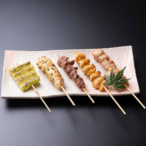 串焼きは国産鶏を使用。自家製の焼き塩やこだわりのタレで丁寧に焼き上げます。入荷状況で地鶏や銘柄鶏は変わります。