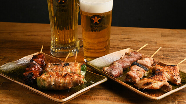 備長炭で丁寧に焼き上げる焼鳥は、香ばしさと火入れの巧みさが際立つ一本。ほろ苦さを残したビター系のタレが特徴で、鶏の旨味を引き締めます。鶏串だけでなく、牛串や豚串、野菜巻きまで揃う多彩さも魅力。老舗仕込みの技が光る、本格派の味わいです。