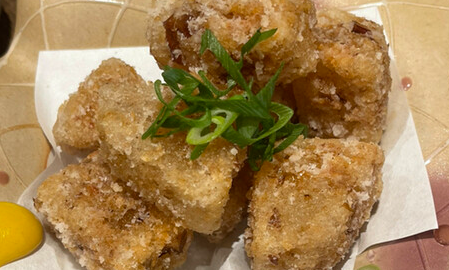 季節の水茄子のカルパッチョや生ハムの天麩羅、香ばしい焼き鳥が絶品で、特につくねが脂が乗っていて絶妙な味わい。居心地の良い店内で、地元の人たちにも愛されるお店です。