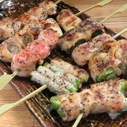 丁寧に焼き上げた自慢の焼鳥以外にも新鮮野菜を豚バラ巻きにした≪勝手串≫が特にオススメです。アスパラやえのき、万能葱等種類も豊富にございますので是非一度お召し上がり下さい!