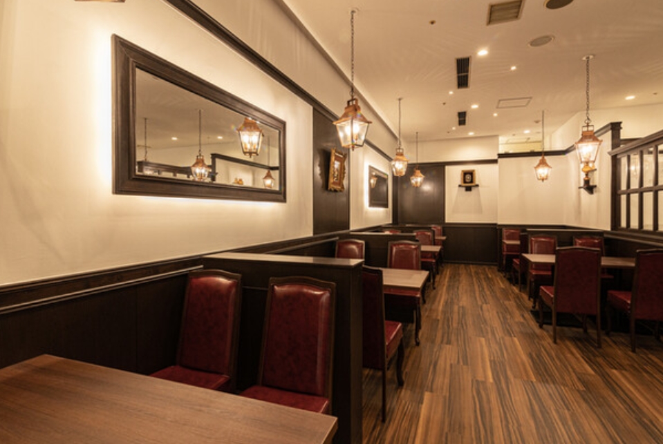 近鉄八尾駅近く、商業施設LINOAS1階にある珈琲館。お子様からご年配の方まで安心して過ごせる空間づくりを大切にしており、買い物の合間の休憩や友人とのお茶会など、さまざまなシーンで利用できます。昭和レトロな照明やソファが、心を落ち着かせてくれます。