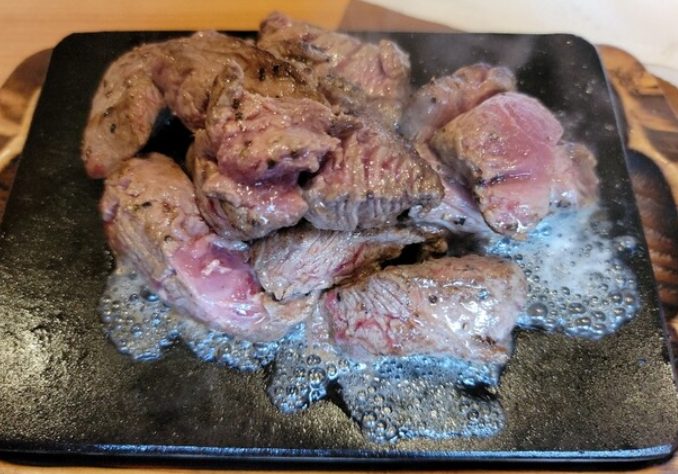 富士山の溶岩石プレートで焼かれたステーキは、熱々でジューシー。焼き立ての美味しさをそのままお楽しみいただけます。味変を楽しめるソースの数々も、料理をさらに美味しく引き立てます。