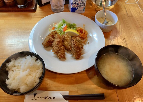 家族経営のアットホームな雰囲気。美味しいカキフライやハンバーグをテラス席でゆったりと味わいませんか。