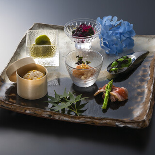 当店では、毎朝市場から仕入れる選りすぐりの食材を豪快かつ繊細に仕立てたコース料理でご用意。季節の素材を使用したお造りや焼き物、名物〆には毎日親方が打つ手打ち蕎麦をお愉しみいただけます。和食食材だけにこだわらず、様々な食材を研究して新しいお料理を開発していくとともに、温故知新の気持ちを大切に取り組んでおります!