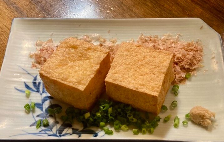 外は驚くほどサクサク、中はふんわり熱々に仕上げられた厚揚げは、シンプルながら技が光る人気メニュー。割った瞬間に立ちのぼる湯気が、揚げたてならではの美味しさを物語ります。素材の良さと揚げ加減の妙で、ついもう一品頼みたくなる、満足度の高い小料理です。