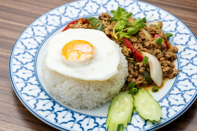 シェフの手による本格的なガパオライスとクリーミーカレーが絶品。香り高いバジルとスパイシーな味わいが魅力的。本格インド料理やアジア各国の料理、日本人好みの創作料理などを多彩にご提供しています。