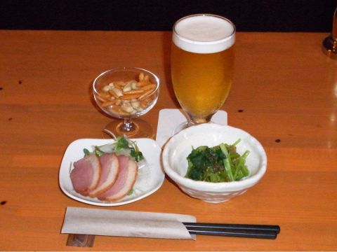 毎日日替わりのお通し♪お料理とともに、お酒、空間、会話、そしてレーベンブロイでお楽しみください!お値段はチャージ料込の価格!