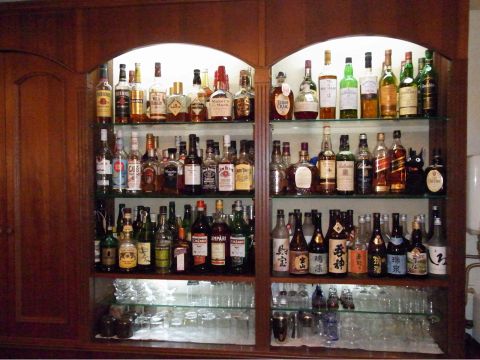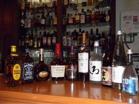 日本酒、焼酎、ウイスキー、テキーラ等々、全部で80種類以上のお酒を取り揃えてます!未知のお酒に出会えるかも!これだけたくさんお酒がおいてあると、もはやインテリアに♪